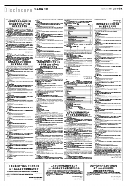 证券代码:000628 证券简称:高新发展 公告编号:2015-53