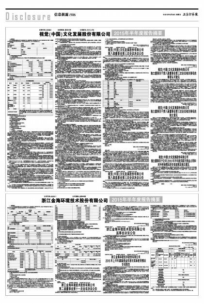 根据中国证监会《上市公司监管指引第2号—上市公司募集资金管理和使用的监管要求》、《上海证券交易所上市公司募集资金管理办法(2013年修订)》和《浙江金海环境技术股份有限公司募集资金管理办法》等相关规定,现将浙江金海环境技术股份有限公司(以下简称“公司”或“本公司”)2015年上半年度募集资金存放与使用情况专项报告如下: