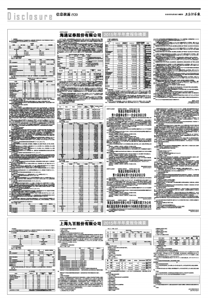 上海九百股份有限公司2014年度利润分配方案已经2015年6月25日召开的公司2014年度股东大会审议通过。本次分配以400,881,981股为基数,向全体股东每10股派发现金红利0.33 元(含税),共计派发股利13,229,105.37元。股东大会决议公告于2015年6月26日披露于《上海证券报》及上海证券交易所网站(http://www.sse.com.cn)。