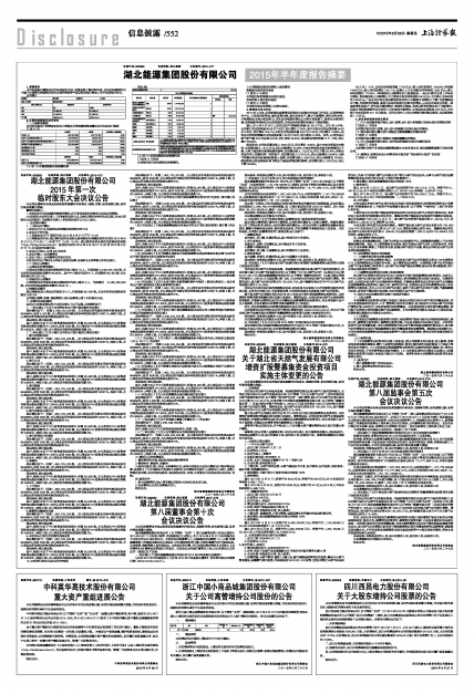 证券代码:000883 证券简称:湖北能源 公告编号:2015-077