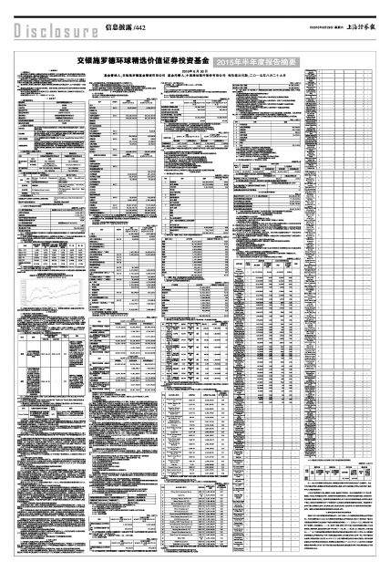 基金管理人:交银施罗德基金管理有限公司 基金托管人:中国建设银行股份有限公司 报告送出日期:二〇一五年八月二十九日