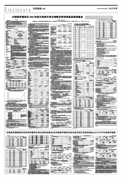 基金管理人:交银施罗德基金管理有限公司 基金托管人:中国农业银行股份有限公司 报告送出日期:二〇一五年八月二十九日
