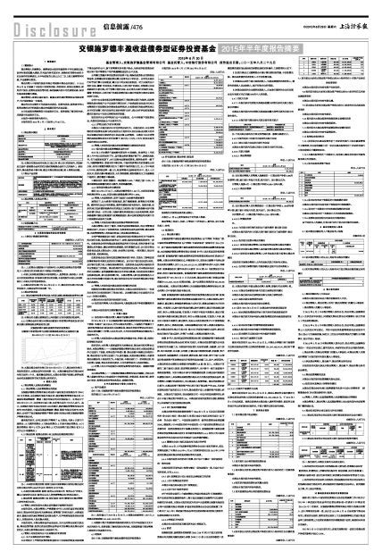 基金管理人:交银施罗德基金管理有限公司 基金托管人:中信银行股份有限公司 报告送出日期:二〇一五年八月二十九日