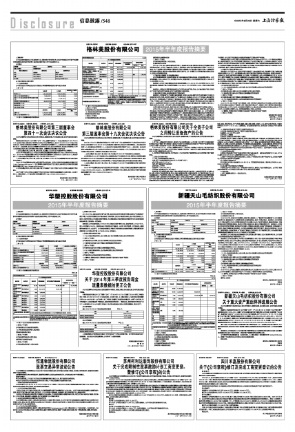 证券简称:禾嘉股份 证券代码:600093 编号:2015-052