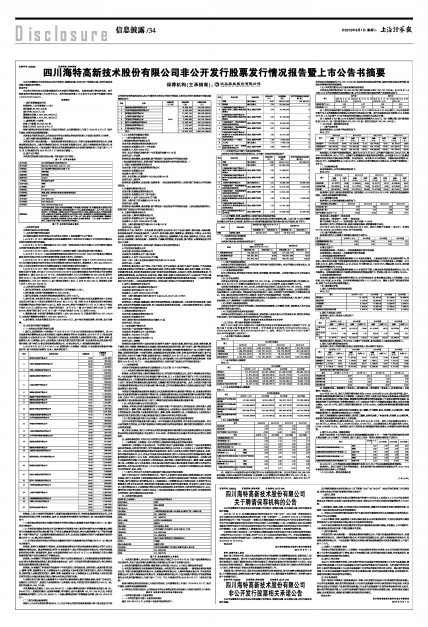 四川海特高新技术股份有限公司非公开发行股票发行情况报告暨上市公告书摘要