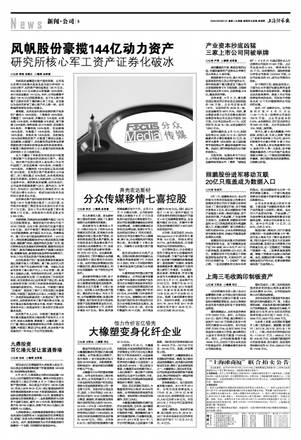 风帆股份豪揽144亿动力资产 研究所核心军工资产证券化破冰