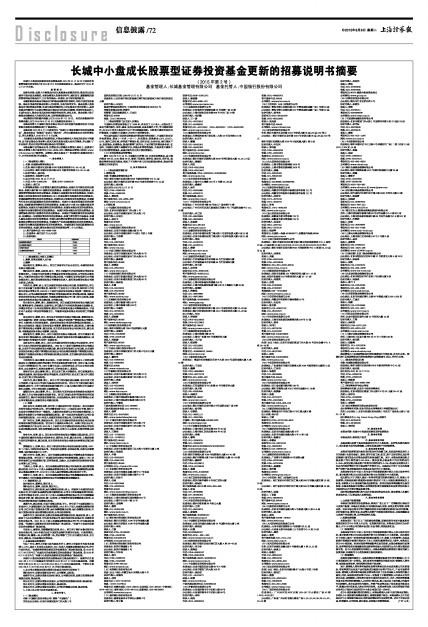 长城中小盘成长股票型证券投资基金更新的招募说明书摘要
