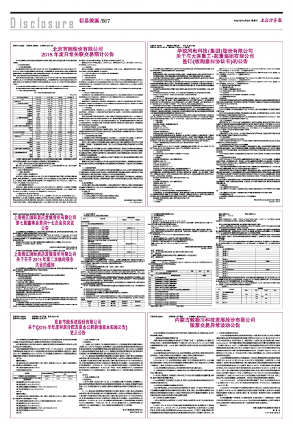 证券代码:600754/900934 证券简称:锦江股份/锦江B股 公告编号:2015-063
