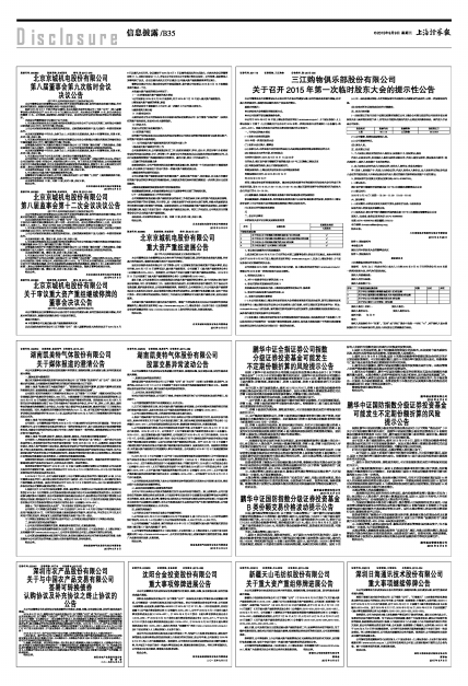 证券代码:601116 证券简称:三江购物 公告编号:临-2015-030