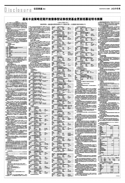 嘉实丰益策略定期开放债券型证券投资基金更新招募说明书摘要