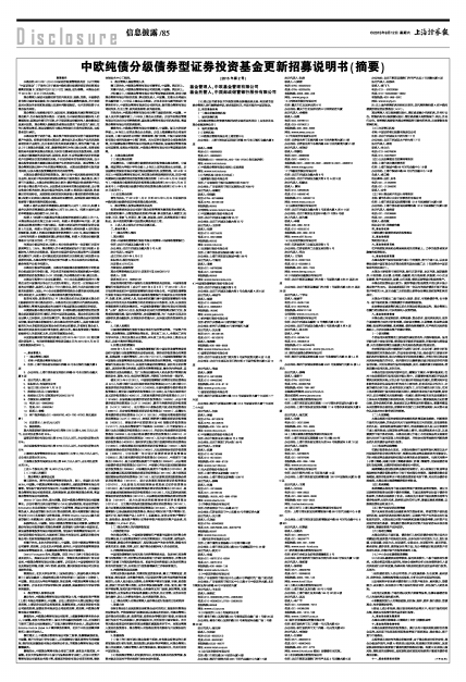 中欧纯债分级债券型证券投资基金更新招募说明书(摘要)