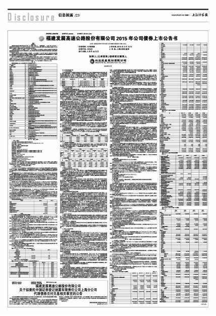 福建发展高速公路股份有限公司2015年公司债券上市公告书