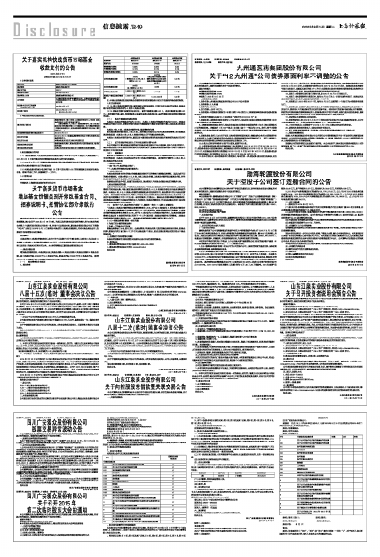 证券代码:603167 证券简称:渤海轮渡 公告编号:临2015-033