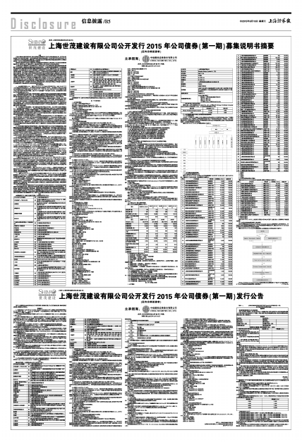 1、债券名称:上海世茂建设有限公司公开发行2015年公司债券(第一期)。