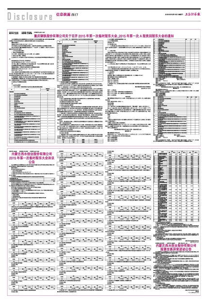 重庆钢铁股份有限公司关于召开2015年第一次临时股东大会、2015年第一次A股类别股东大会的通知