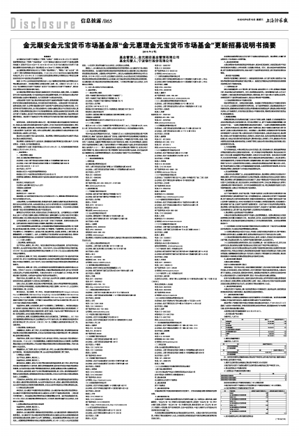 金元顺安金元宝货币市场基金原“金元惠理金元宝货币市场基金”更新招募说明书摘要