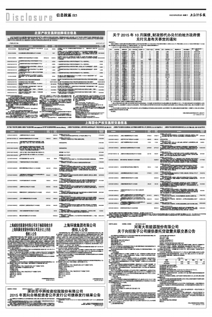关于2015年10月国债、财政部代办兑付的地方政府债