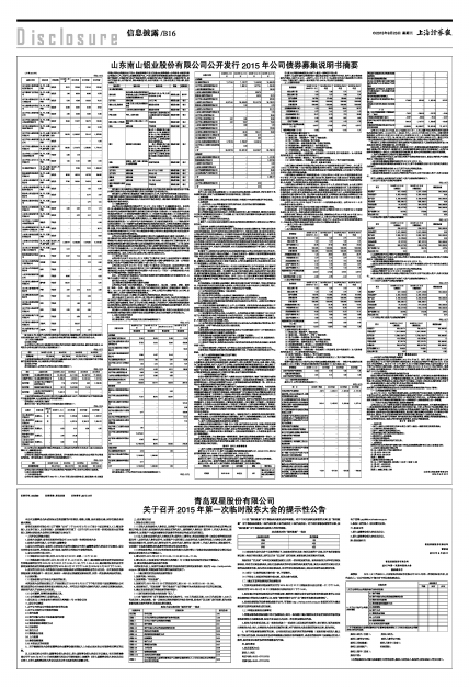 山东南山铝业股份有限公司公开发行2015年公司债券募集说明书摘要