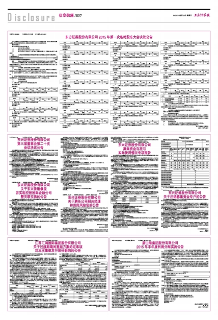 东方证券股份有限公司2015年第一次临时股东大会决议公告