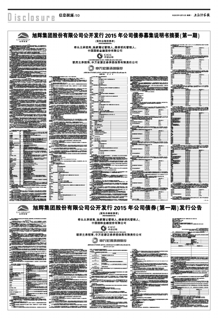 13、本公告仅对本期债券发行的有关事宜进行说明,不构成针对本期债券的任何投资建议。投资者欲详细了解本期债券情况,请仔细阅读《旭辉集团股份有限公司公开发行2015年公司债券(第一期)募集说明书》,该募集说明书摘要已刊登在2015年10月12日(T-2)日的《上海证券报》上。有关本次发行的相关资料,投资者亦可到上海证券交易所网站(http://www.sse.com.cn)查询。