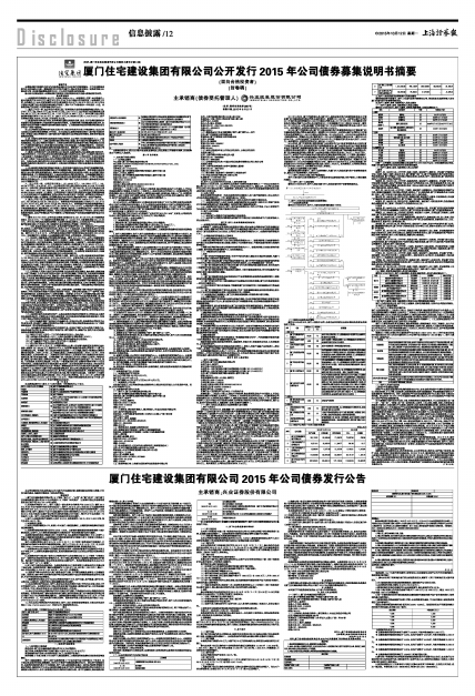1、债券名称:厦门住宅建设集团有限公司2015年公司债券。