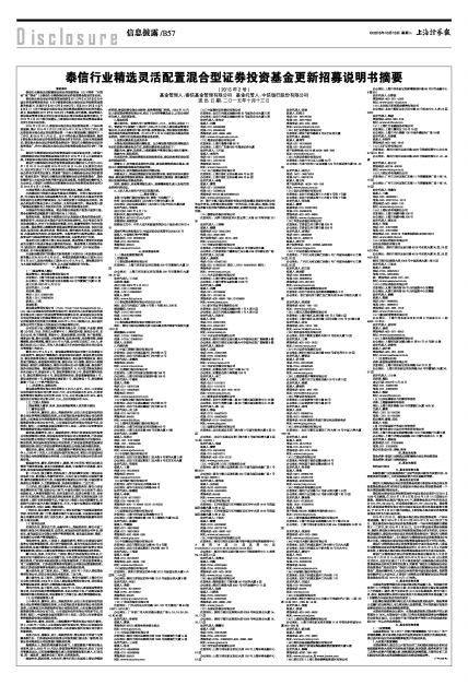 泰信行业精选灵活配置混合型证券投资基金更新招募说明书摘要