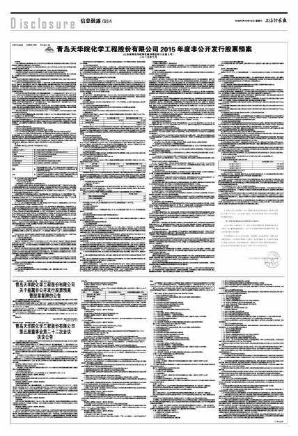 青岛天华院化学工程股份有限公司2015年度非公开发行股票预案
