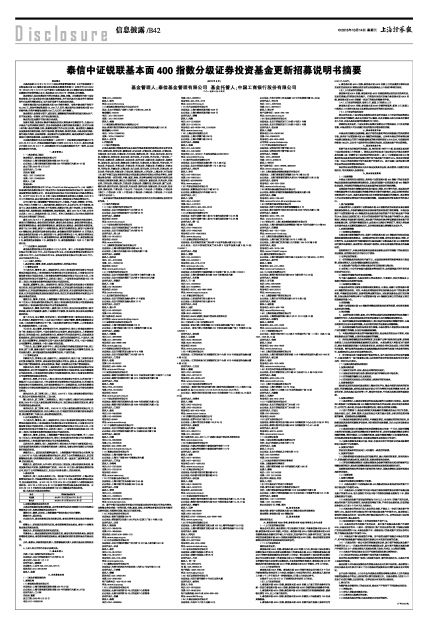 泰信中证锐联基本面400指数分级证券投资基金更新招募说明书摘要