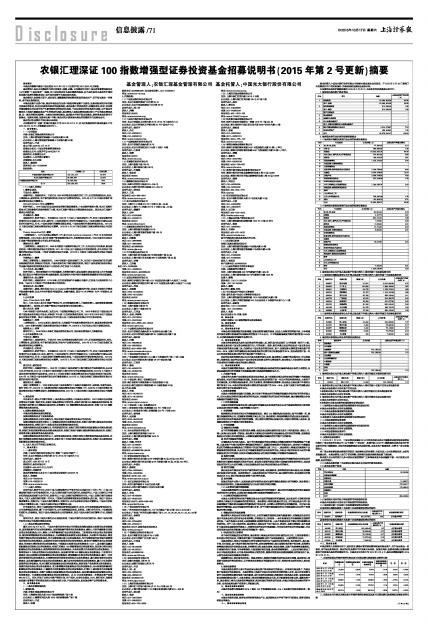 农银汇理深证100指数增强型证券投资基金招募说明书(2015年第2号更新)摘要