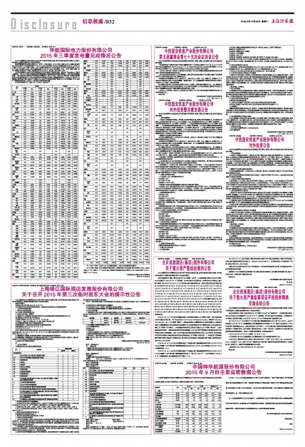 2015年三季度发电量完成情况公告