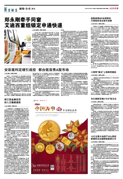 据了解,MP公司净利润增长迅速,2013年至2015年1至6月,MP公司营业收入分别为3.97亿元、3.87亿元和1.94亿元,净利润分别为448.35万元、4187.57万元和3019.08万元。