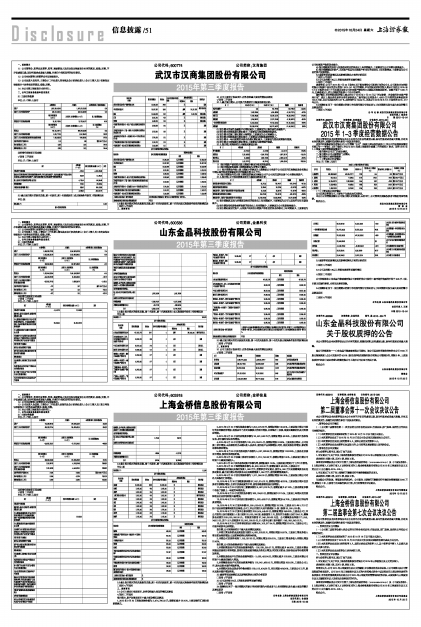 该事项详细情况见公司同日刊登于上海证券交易所网站(www.sse.com.cn)及《中国证券报》、《上海证券报》、《证券日报》、《证券时报》的《上海金桥信息股份有限公司2015年三季度报告及正文的公告》(公告编号:2015-025)。