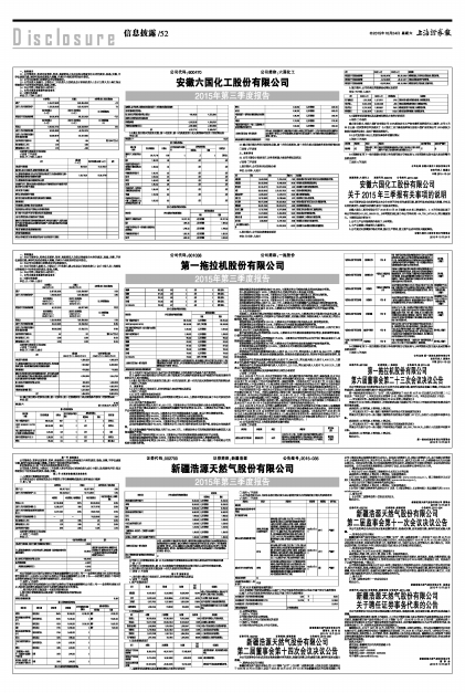 关于2015年三季报有关事项的说明