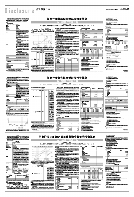 6、《招商行业领先混合型证券投资基金2015年第3季度报告》。