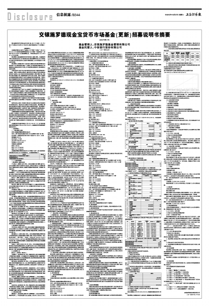 交银施罗德现金宝货币市场基金(更新)招募说明书摘要