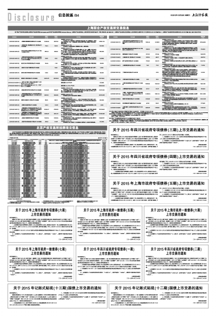 根据《关于发行2015年四川省政府专项债券(二期)有关事项的通知》和上海证券交易所(以下简称“本所”)有关规定,2015年四川省政府专项债券(二期)(以下简称“本期债券”)将于2015年11月2日在本所竞价系统和固定收益证券综合电子平台上市。现将有关事项通知如下: