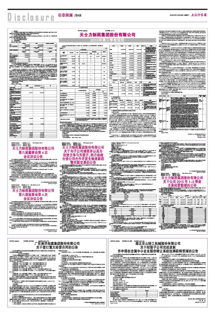 证券代码:600535 证券简称:天士力 编号:临2015-048号
