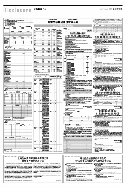 主要内容:监事会同意湖南艾华集团股份有限公司2015年第三季度报告资料,并对公司编制的2015年第三季度报告发表如下书面审核意见:2015年第三季度报告的编制和审议程序均符合法律、法规、公司章程和公司内部管理制度的各项规定;2015年第三季度报告的内容和格式均符合中国证监会和上海证券交易所的各项规定,所包含的信息能从各个方面真实反映出公司的经营管理和财务状况等事项;未发现参与2015年第三季度报告编制和审议的人员有违反保密规定的行为;2015年第三季度报告真实反映了本报告期公司的实际情况,所记载事项不存在任何虚假记载、误导性陈述或重大遗漏,所披露的信息真实、准确、完整。