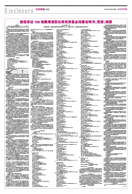 建信深证100指数增强型证券投资基金招募说明书(更新)摘要