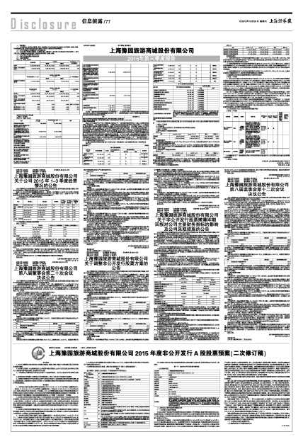 证券代码:600655 证券简称:豫园商城 公告编号:临2015-077