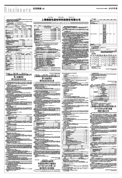 证券代码:002565 证券简称:上海绿新 公告编号:2015-102