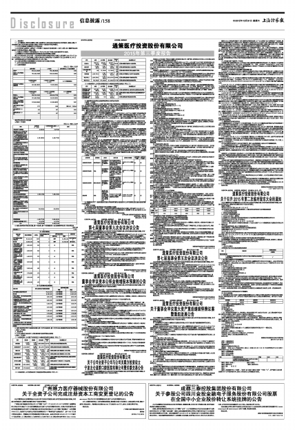 一、审议通过《通策医疗投资股份有限公司2015年第三季度报告》和《通策医疗投资股份有限公司2015年第三季度报告摘要》(具体内容详见《通策医疗投资股份有限公司2015年第三季度报告》和《通策医疗投资股份有限公司2015年第三季度报告摘要》)