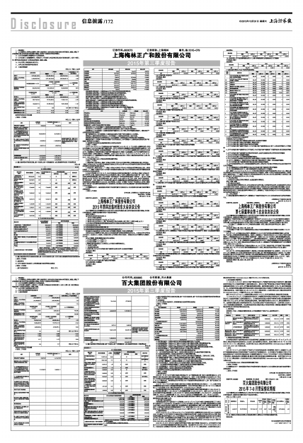 一、审议通过了上海梅林2015年三季度报告及摘要(详见上海证券交易所网站公告, 编号:2014-079号)。