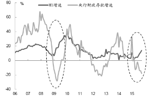 我们以往衡量货币流通速度还会观察税收增速指标。因为,只要经济中产生支付活动,钱实际花出去了,一般都会伴随税收的增加,尤其是增值税和营业税等流转税。如果看财政的税收收入增速,最近几个月仍在持续放缓,10月份同比只有1.8%,是最近几年的低位(见图2)。虽然物价下行是税收放缓的一个重要原因,但实际上是因为货币派生后很多钱趴在账上不参与经济活动。比如,地方债发行也是融资,但实际置换部分的地方债发行及募集的资金不能用于投资,只能用于偿还到期贷款和非标融资等。因此,地方债募集的资金在没有偿还到期债务前都是以财政存款形式存放在央行,没有参与经济活动。还有,由于很多项目在实际操作层面还缺乏相应的手续和审批流程,专项金融债项目资金拨付下去后,很多都只能暂时以活期存款趴在账上,没有参与经济活动。