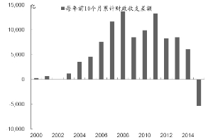 往年底看,由于财政前几个月支出过快,投资了年底可用的财政资金(前10个月累的财政收支差额是历史上最低的一年,见图4),这意味着11 和12 月份的财政支出增速将急速下滑,即使专项金融债项目进度可能加快,综合来看,对经济的拉动作用也未必能更强。如果不能马上增加财政赤字,专项金融债项目进度又偏慢,那么降低实际利率,刺激货币流通速度提升仍是必要的。若无,那么经济仍将继续低迷,带动经济和通胀下行。10月份CPI 低于市场预期,已经开始反映通缩风险,10月份的个人所得税增速也大幅下滑,反映居民收入和消费开始受到影响。10月份CPI 中的服务价格已经开始出现下滑苗头,未来走势值得关注。