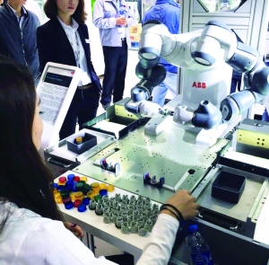 在2015世界机器人大会现场,YuMi用灵巧双手折纸飞机的画面被相机频频定格;而在工博会现场,YuMi则是以人机协作装配工作站的形式呈现。