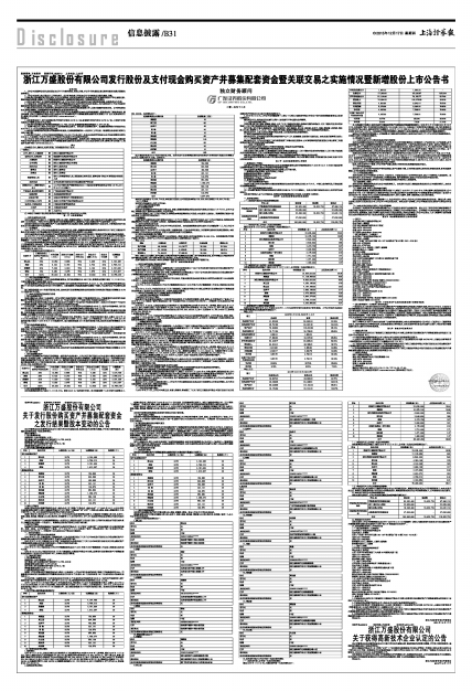 浙江万盛股份有限公司发行股份及支付现金购买资产并募集配套资金暨关联交易之实施情况暨新增股份上市公告书