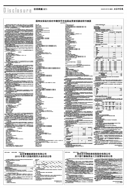 国寿安保场内实时申赎货币市场基金更新招募说明书摘要