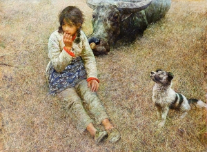 罗中立的《父亲》则是1975年在大巴山区雨夹雪的除夕之夜遇到一位守粪的农民,开始构思,并于1980年创作了这幅作品,1981年参加第二届全国青年美展时获一等奖。他借鉴美国照相写实主义的创作手法,以领袖像般的巨幅尺寸,细致入微地刻画了大巴山区的一位农民形象,具有充沛的情感和强烈的视觉张力。
