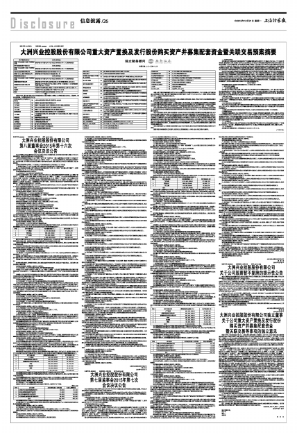 大洲兴业控股股份有限公司重大资产置换及发行股份购买资产并募集配套资金暨关联交易预案摘要